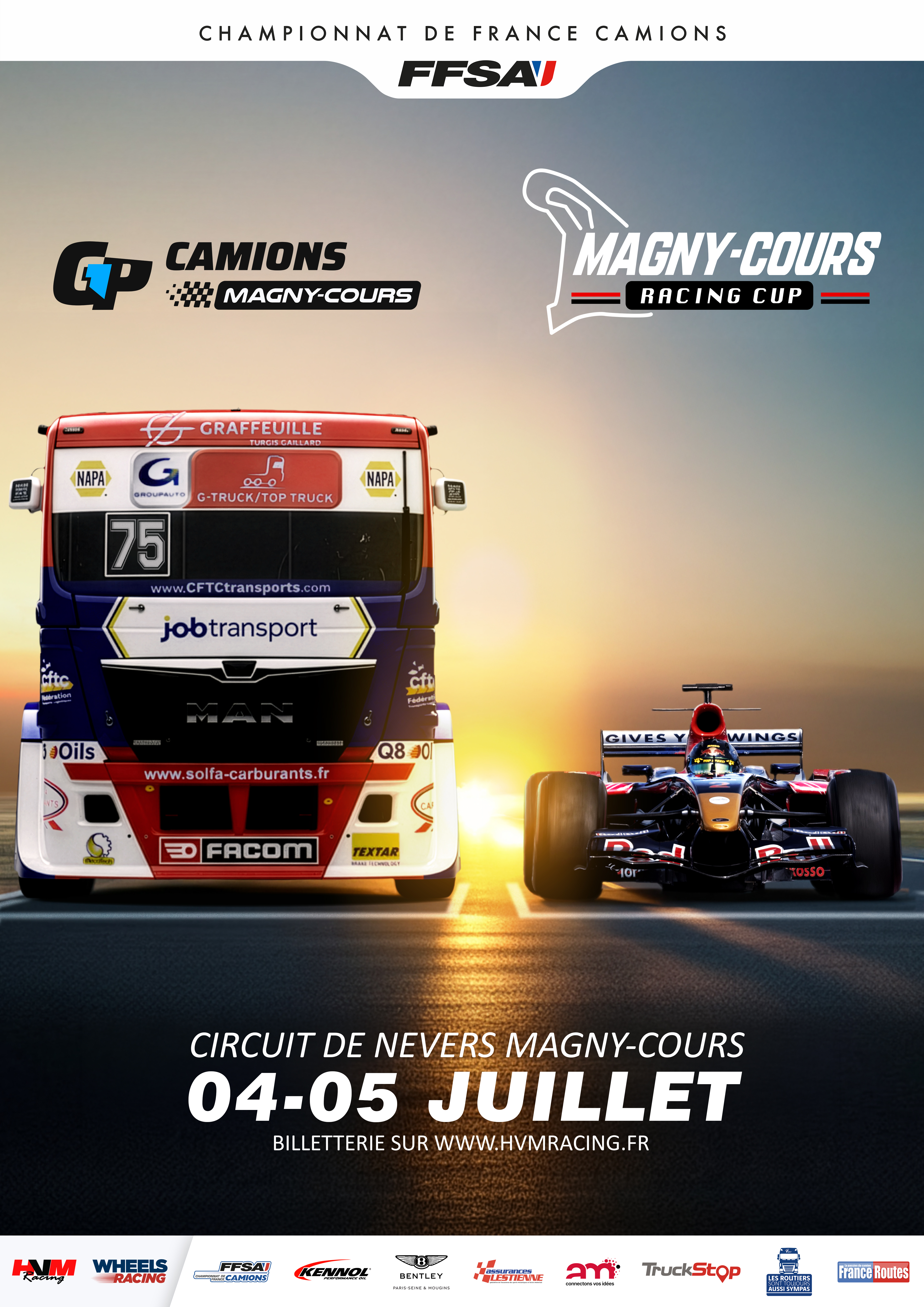 Epreuve regroupant le Grand Prix Camions et des plateaux internationaux qui se donnent rendez-vous au Circuit de Nevers Magny-Cours les 03-04-05 juillet 2025 !